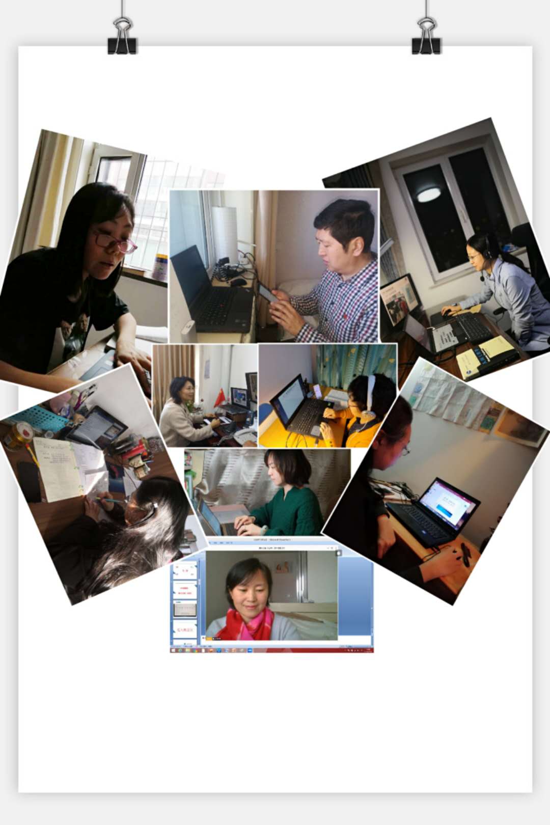 在这段特殊的时期你们用不同的形式坚守着岗位,关爱着学生。即便是与学生们远隔千里,老师们都想尽一切办法,把全部的视频教学软件都调试成最佳状态,为的是通过网络将全班同学聚集在一起,停课不停学,隔屏不隔爱!老师们心里装的全是她的学生们(I)。每一堂成功的网课背后都凝聚了老师们突破常规备课的心血,有的老师整个寒假几乎天天到办公室里备课,有的老师即便在家里也是全身心投入教学准备,老师们真的是很用心(