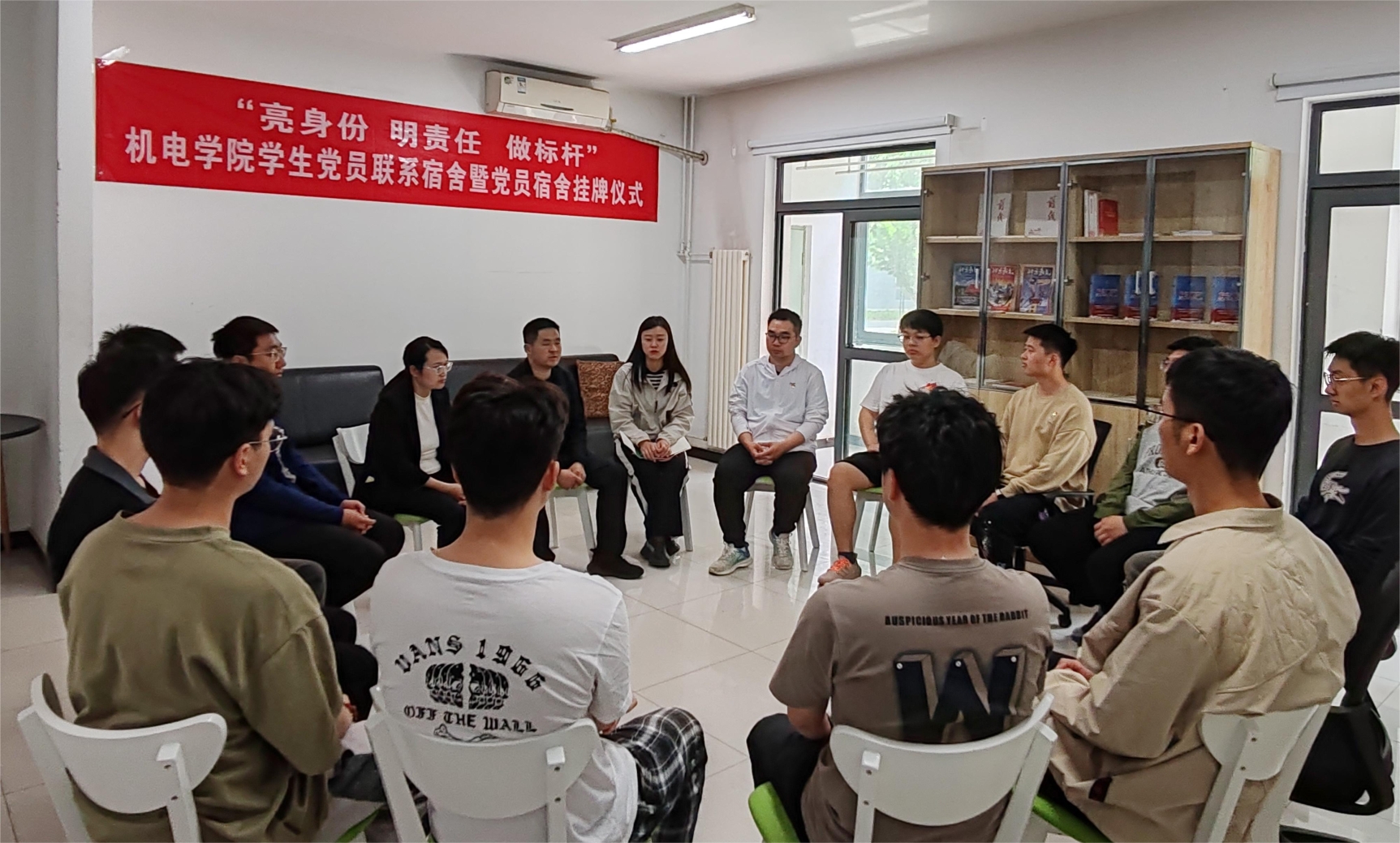为充分发挥“一站式”学生社区的党建引领作用,发挥学生党员的先锋模范作用,进一步推进学生党建工作做实做细,4月26日,指尖四川麻将 在学生公寓9号楼“一站式”社区辅导员工作站举办“亮身份 明责任 做标杆”学生党员联系宿舍暨党员宿舍挂牌活动,学院全体辅导员、学生党员代表参加了活动。