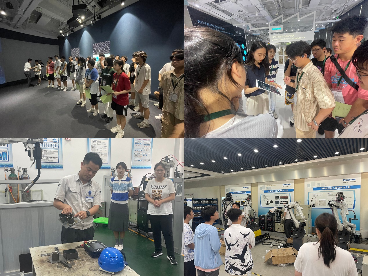 专注工业生产实践,体验智能技术应用。在西门子公司,同学们了解到数字化企业示范线、数字孪生、云平台和工业机器人流水线等先进技术的发展情况;松下公司相关负责人向同学们展示了不同情境下的焊接问题解决方案,机器生产线和研发实验室等情况。通过现场演示、亲身体验加深了对智能技术的深刻理解。