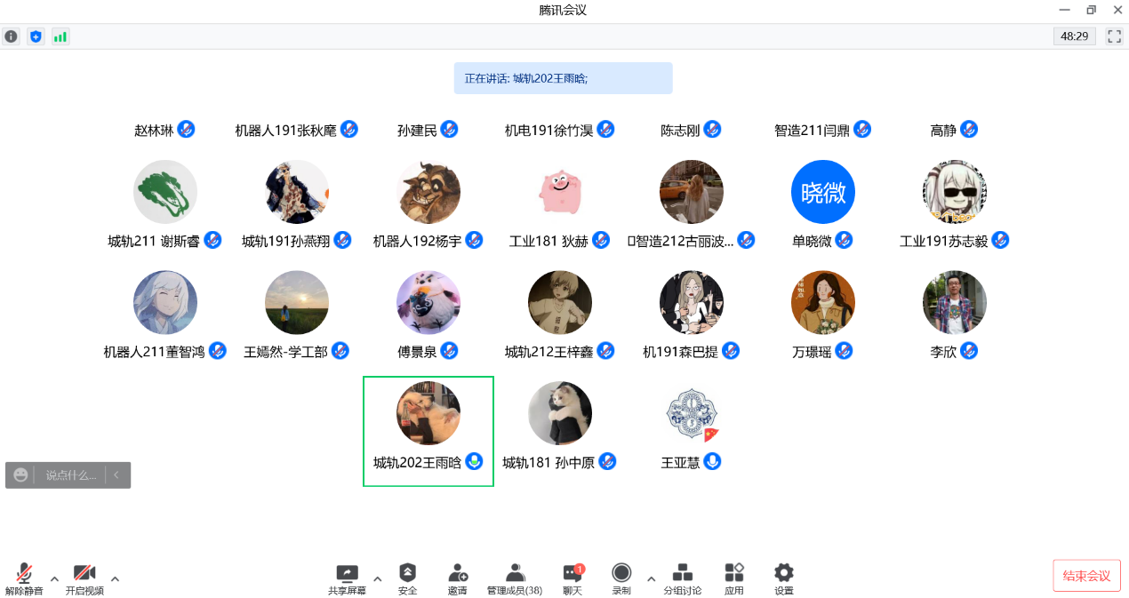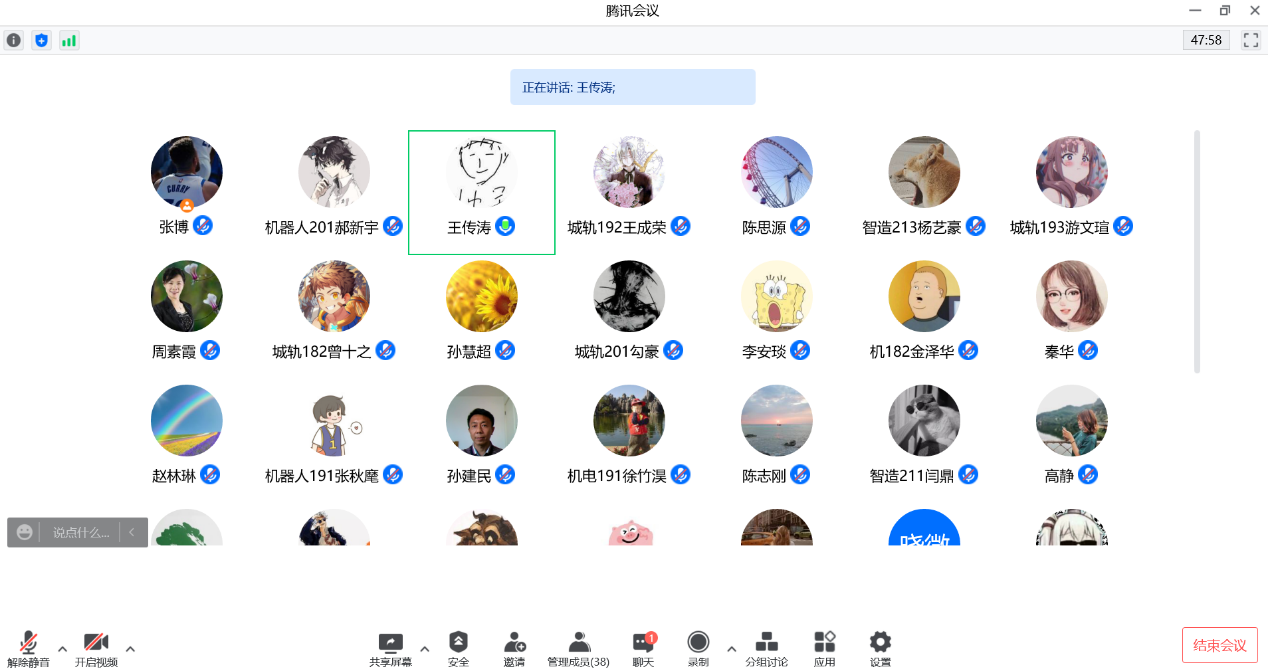 5月20日,指尖四川麻将 线上召开本科生期中座谈会,校督导专家王亚慧、孙建民、教务处副处长赵林琳、教务处孙慧超、学工部王嫣然、学院领导班子、各系主任、教务员、辅导员以及各班代表参加了会议,会议由副院长王传涛主持。
