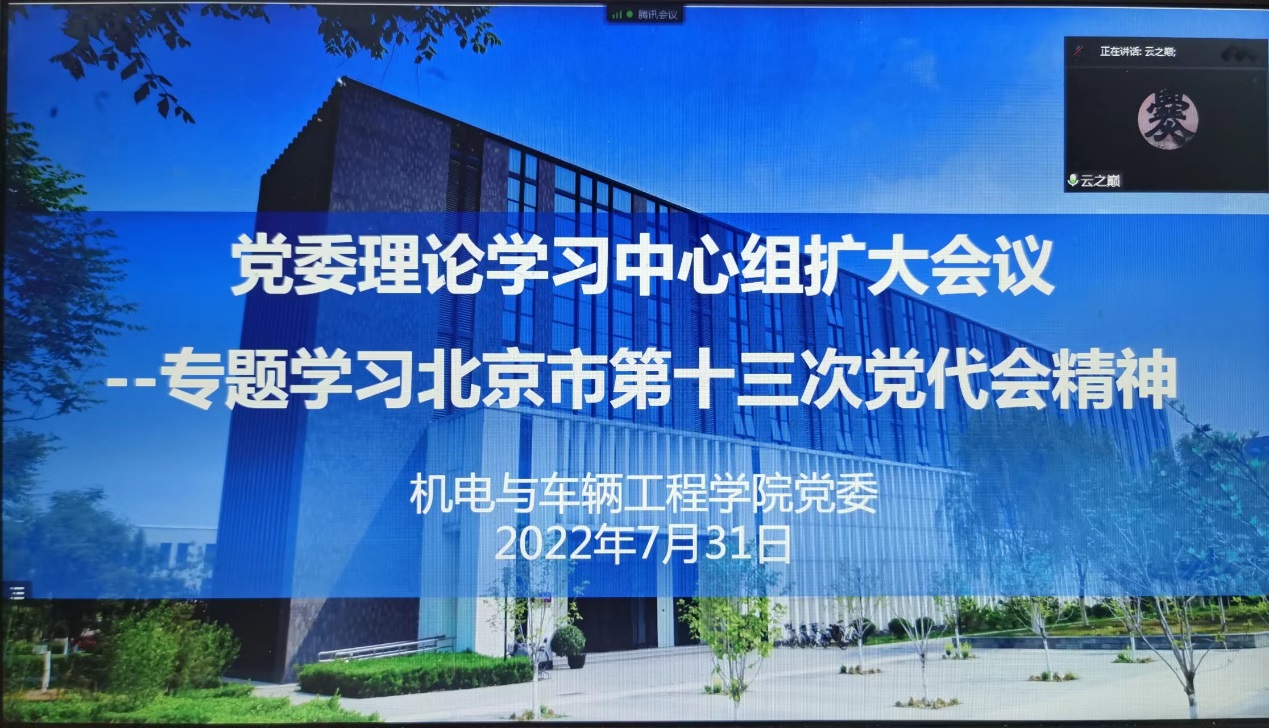 7月31日,学院召开党委理论学习中心组扩大会议,集体学习北京市第十三次党代会精神,班子成员、党委委员和全体党支部书记参加。
