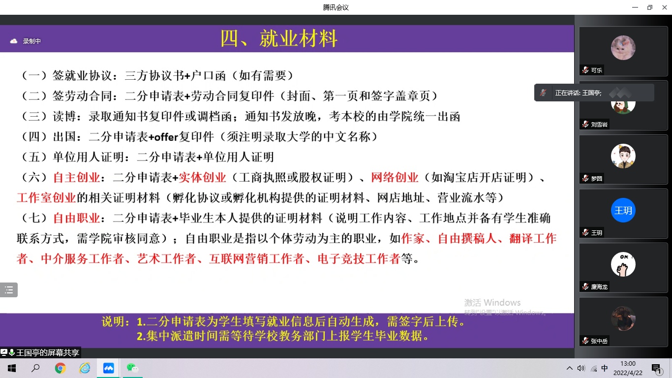 王衍学院长对2022届毕业生目前毕业情况进行简要介绍,在研究生阶段的学术科研、论文撰写等方面提出意见建议。他指出,当前同学们一定要高度重视毕业就业工作,积极主动与导师沟通,把握好时间节点,以高质量科研成果为目标,提前做好毕业就业准备。