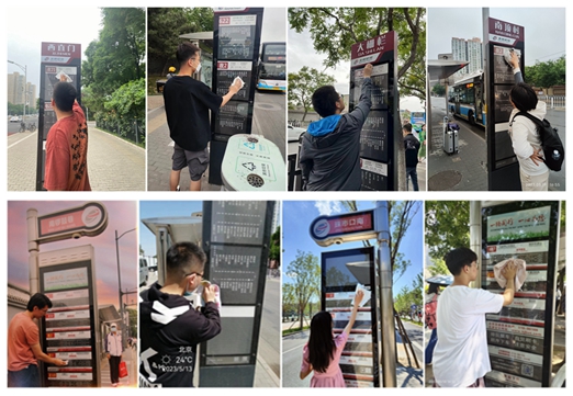 深入公交站点,同学们分批次前往20余个公交站点,对相应站点站牌的种类进行实地考察,并认真开展站牌清理工作。学生志愿者带着小铲子、小毛巾清理公交站牌上的污渍,打造清新整洁的站台环境,在躬行实践中感受劳动的魅力。