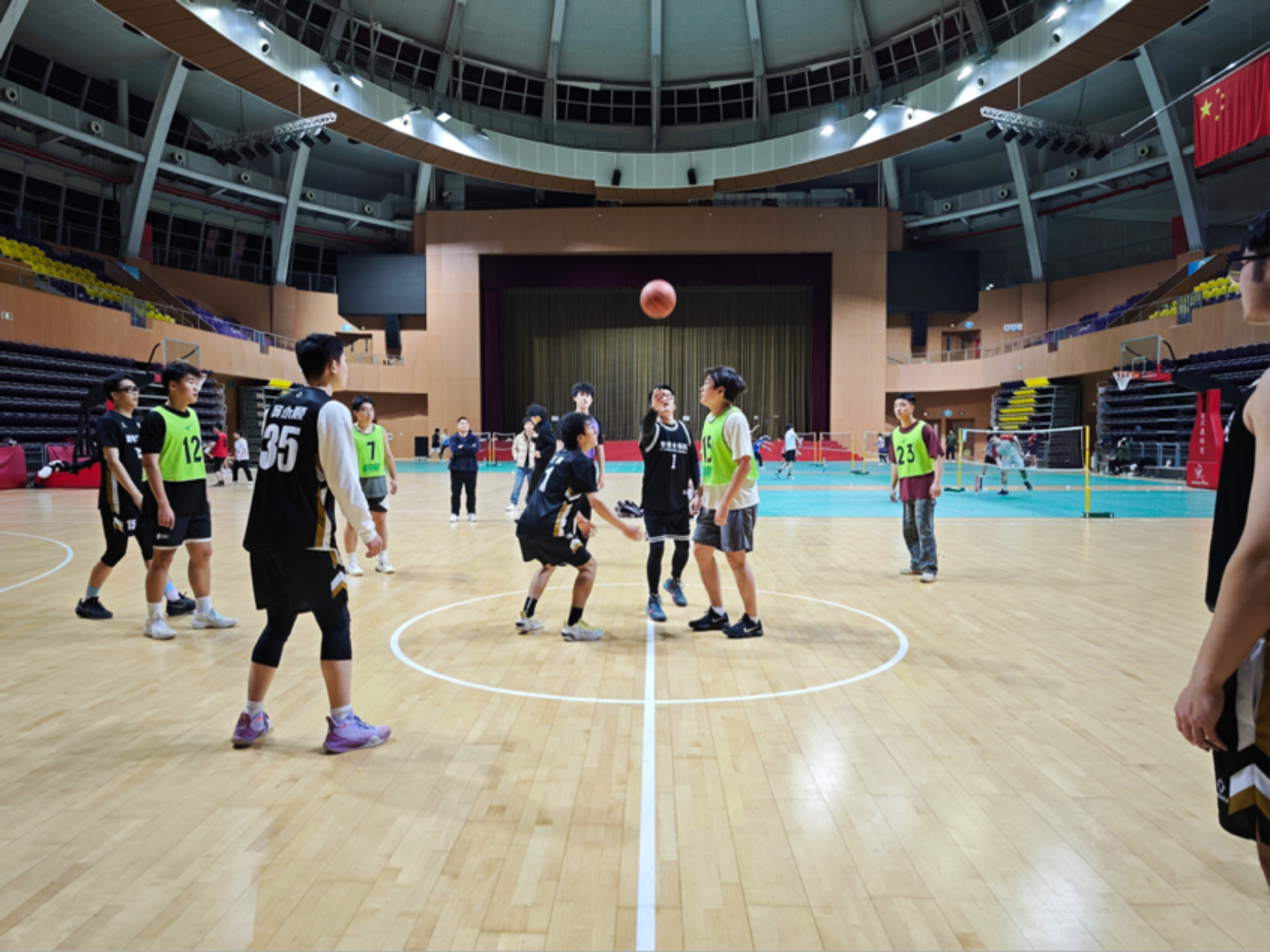 在备受瞩目的车辆231班与机研25届联队比赛中,一个熟悉而亲切的身影步入赛场中央——学院党委书记李大伟亲自执球,为比赛开球!篮球在空中划出一道有力的弧线,不仅拉开了激战的序幕,更传递出学院对学生全面成长的深切关怀与殷切期望。李大伟书记的开球,仿佛在勉励运动员们:在赛场上发扬“机电人”顽强拼搏、精密协作的精神,赛出风格、赛出水平,同时也要享受运动快乐,锤炼强健体魄,将球场上的团队斗志与攻坚智慧,转化为学习钻研与科研创新的不竭动力。
