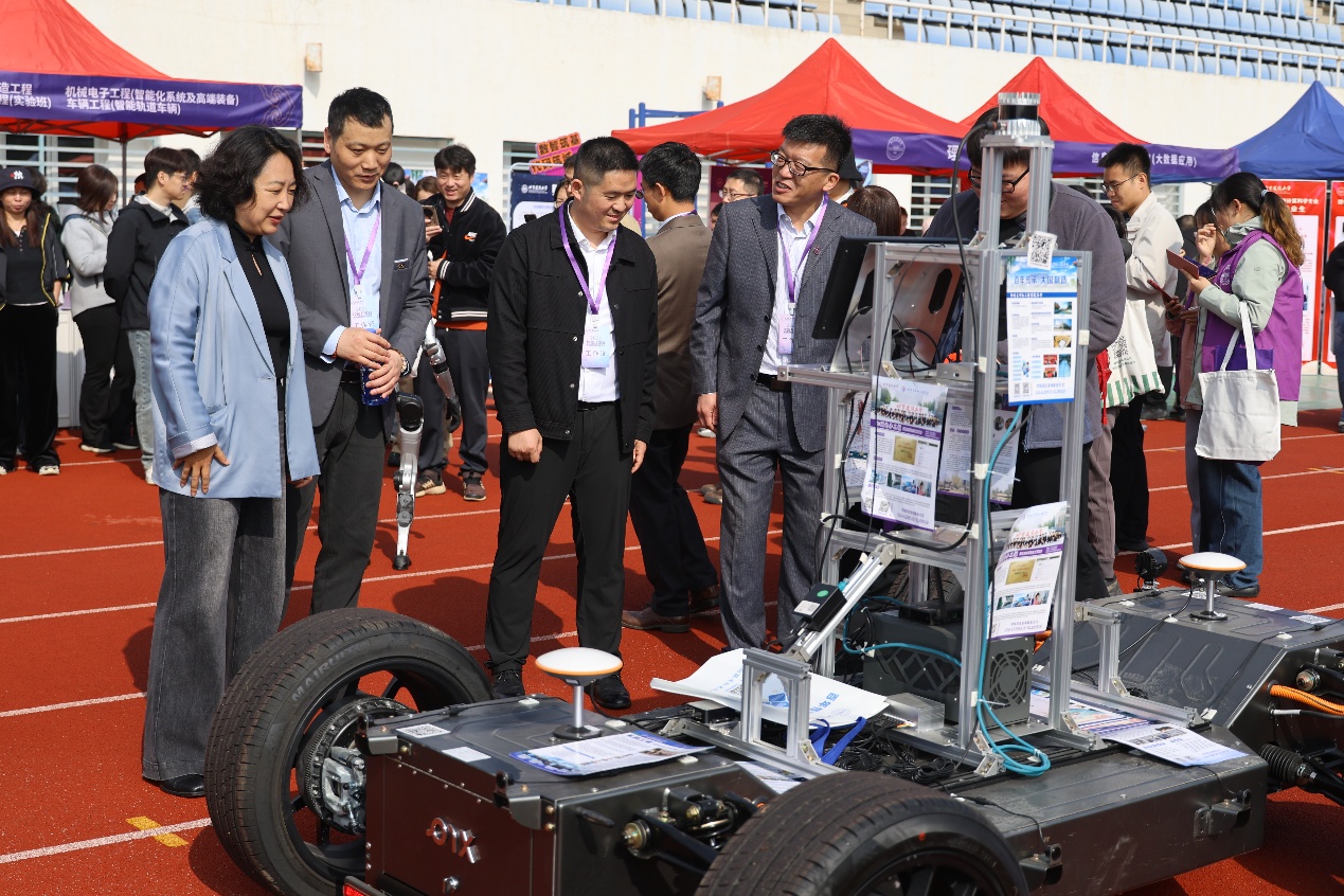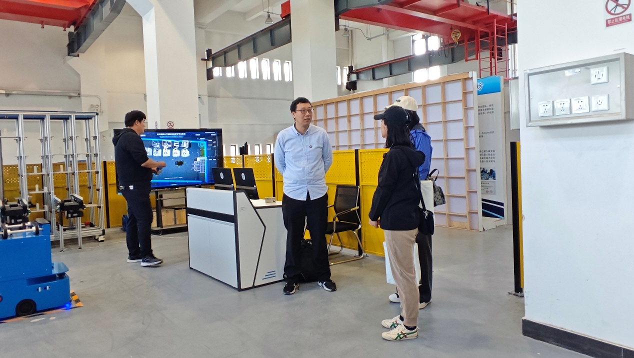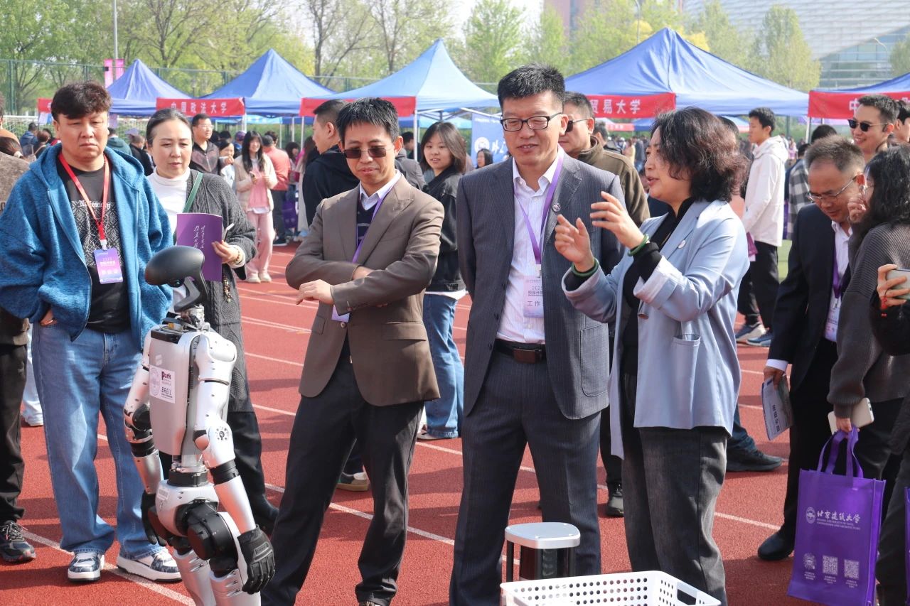 北京市委教育工委委员、市教委副主任吴洁,北京教育考试院副院长周玉玲,北京教育考试院高招办主任孙运科,北京建筑大学党委书记郑宇,党委副书记、校长张大玉等领导来到指尖四川麻将 展区,与学院党委书记李大伟、院长王衍学深入交流,认真了解学院自主研发的无人驾驶车辆平台、无人巡检作业平台、机器人和机器狗等一系列科技项目成果,并对这些展品的功能和性能给予高度关注和肯定。